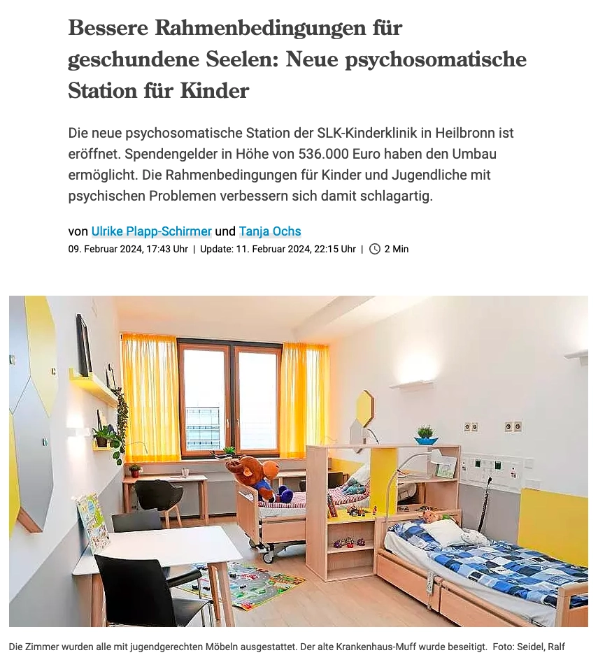 Neue psychosomatische Station für Kinder